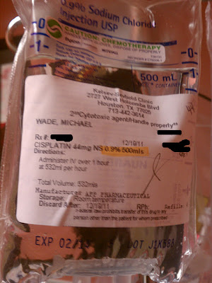So I have finished both my E&P today, just finishing up fluids. The benadryl really knocked me out, I slept through the whole day's treatment basically. I woke up a few times here or there but it did kick my butt pretty well. We aren't going to do the Bleo today, I kept trying to get them to switch the Bleo days to Monday but that never happened. So Bleo, Etoposide, and Cisplatnim tomorrow should be a long day... Oh and I get nuepogen shots on bleo days so wow that should be a busy day!